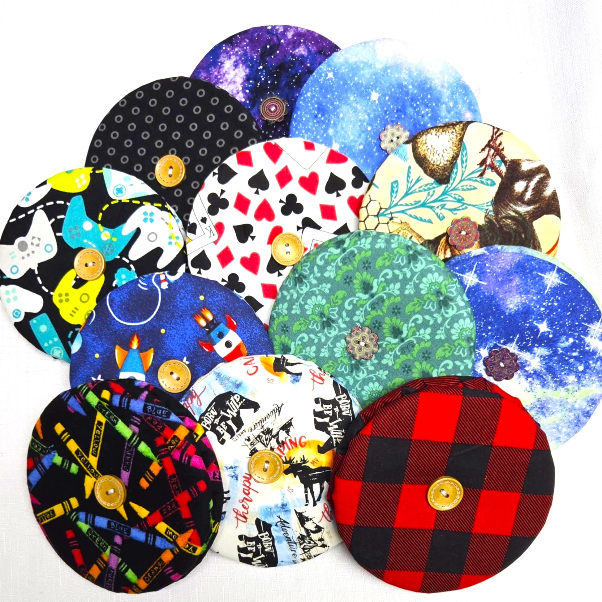 Easily play card games on-the-go or at home with our NEW Playing Card Holder from Winona Creek! Made of durable fabric, this holder is 4-3/4" in diameter and comes in a variety of different colors and designs. Never worry about losing cards or struggling to hold them again. Perfect for all your card gaming needs!